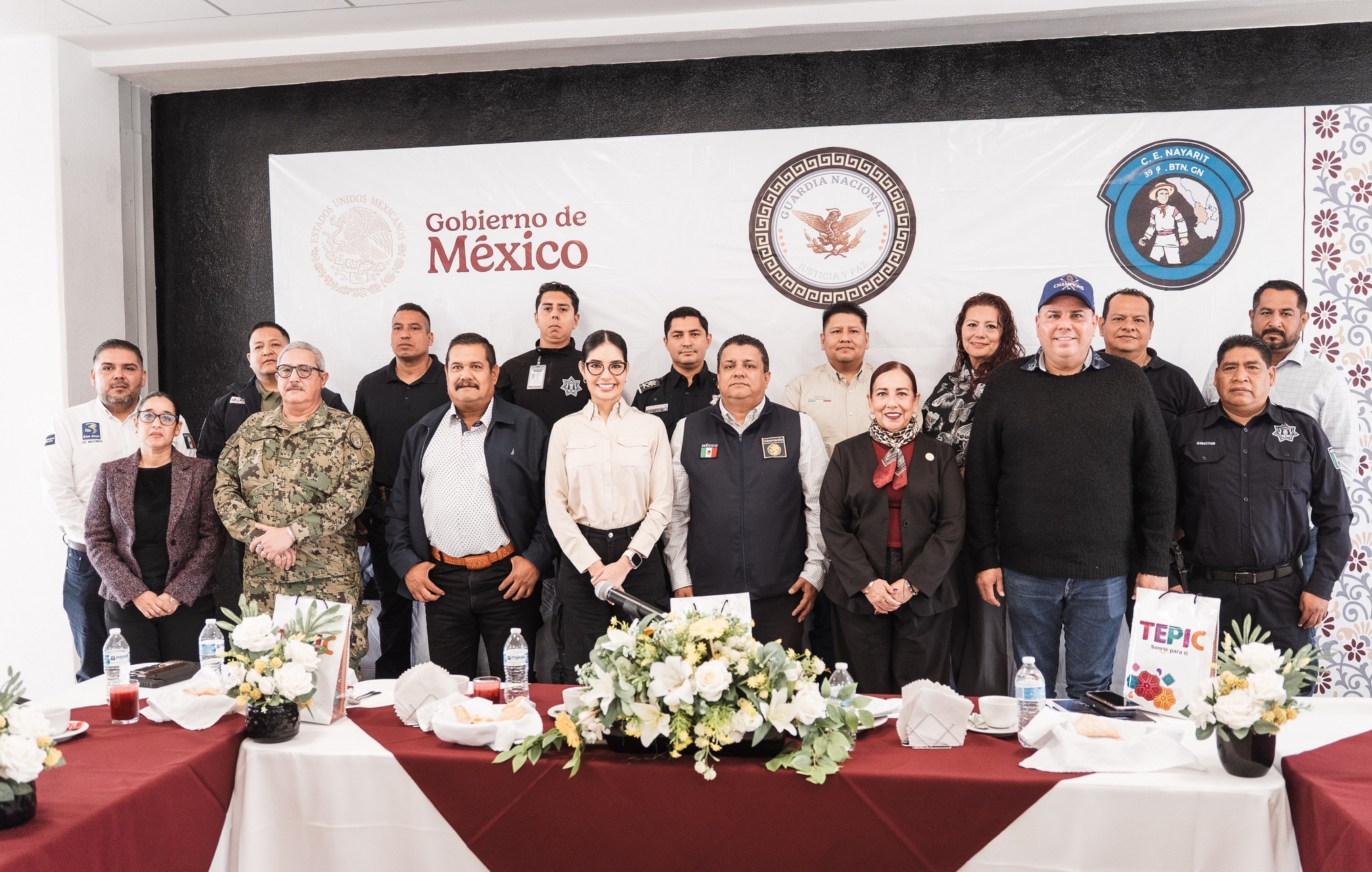 Xalisco, 20 de febrero de 2026.- La presidenta municipal, Maestra Anabel Guerrero, participó en la Mesa Regional para la Construcción de Paz y Seguridad, en las instalaciones de la Guardia Nacional.